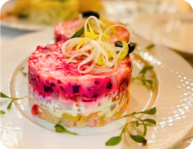 Вкусное разнообразное меню: три салата, два горячих блюда и закуски от шеф-повара
